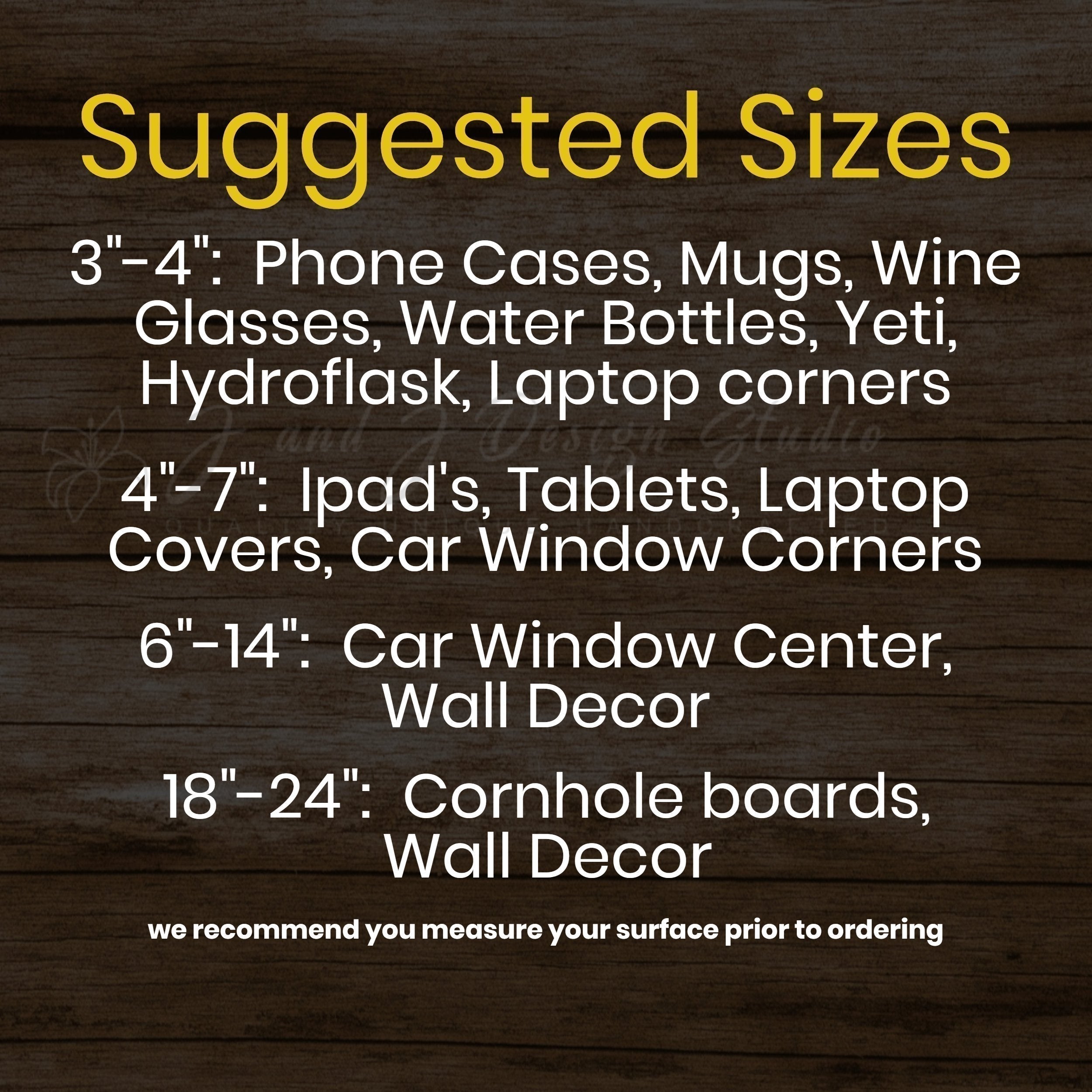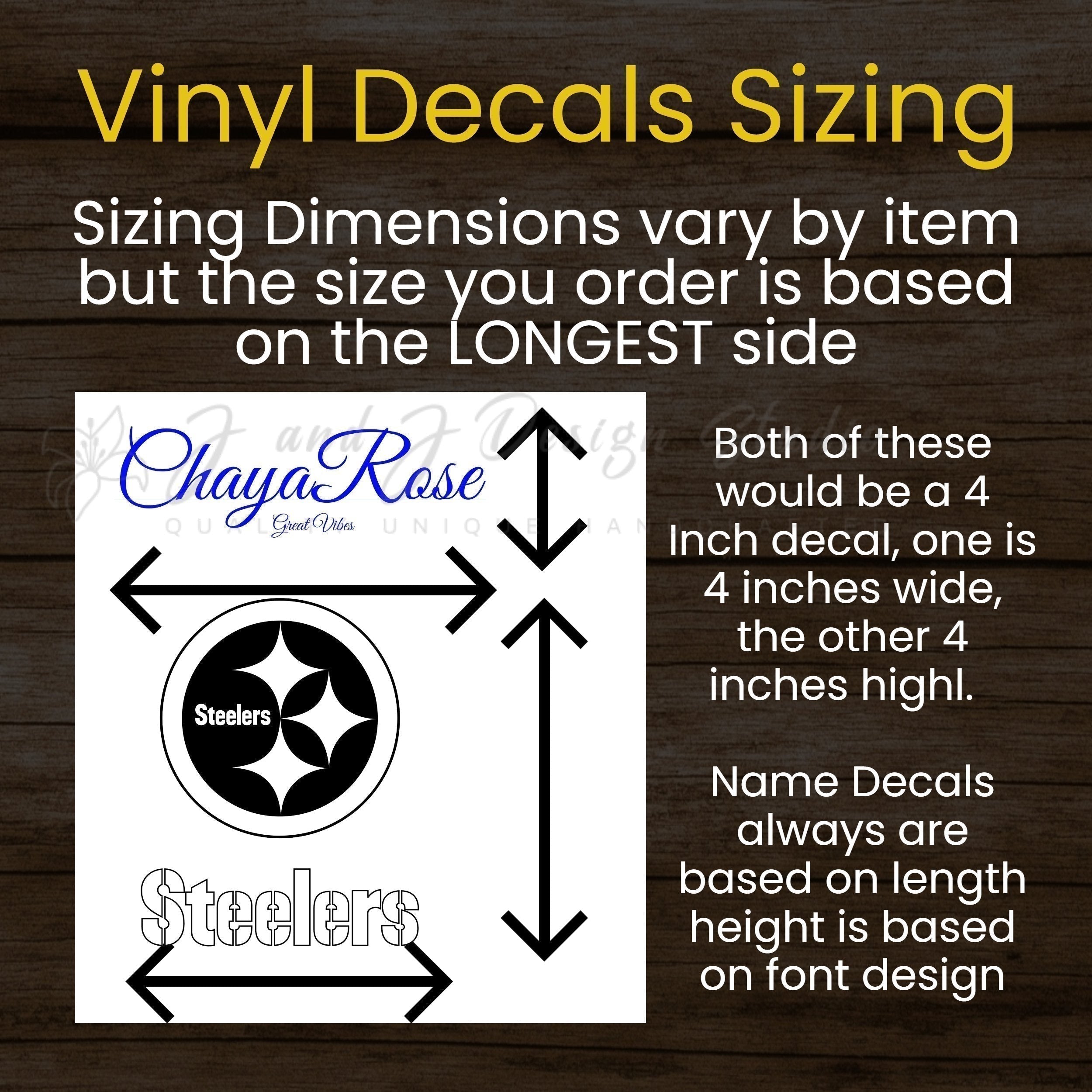 This Vinyl Decal which can be applied to virtually any clean relatively smooth surface.We use only High Quality real ORACAL 651 vinyl. ORACAL 651 vinyl is a calendared medium-term indoor and outdoor lettering, marking and decoration with a thickness of 2.5mil (thousandths of an inch). Made with clear, solvent-based, permanent adhesive Oracal 651 vinyl has a durability rating of up to six (6) years. It can be used for decals for automobiles, windows, signs, decorations, and more.If you have any questions, please message or email me at custom@jandjdesignstudio.comThis comes from a smoke free home.Decal comes mounted on transfer tape with easy instructions on how to installIf you have issues with your decal installation please contact us and we will be happy to work out a resolutionPlease ensure you measure your surface before you order to get the right sizeMaterials: Transfer Tape, Oracal 651 5 year Vinyl.